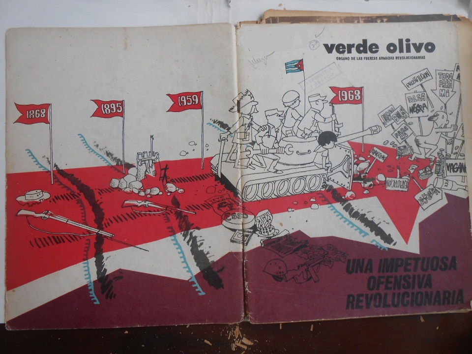 There was an interesting, symbolic appropriation of the centenary celebration of the wars for independence. The Revolution was ruled as a unique process with a genesis in 1868, but which intrinsically included socialism, considered a milestone in 1968. This idea is conveyed by the cover of the Verde Olivo magazine corresponding to April 7th, 1968, even before Fidel’s well-known speech on October 10th in which he proclaimed said thesis.