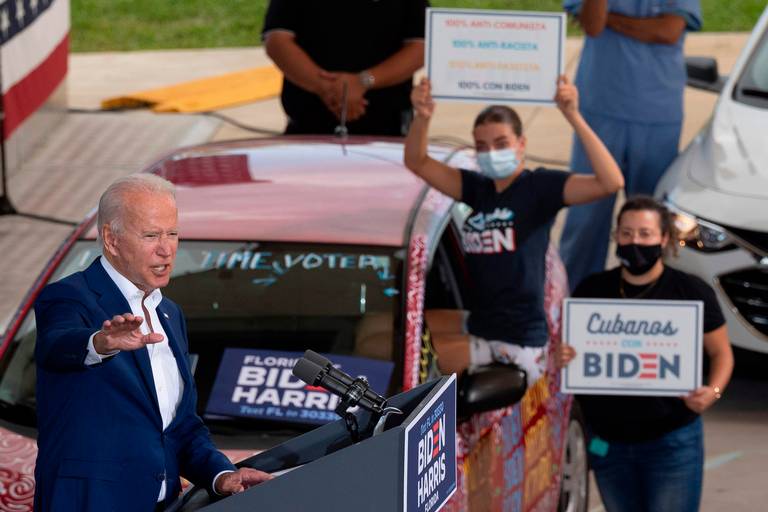 (Photo: Cubanos con Biden members stand behind the 46th president-elect. Credit: Jim Watson AFP / Getty Images)